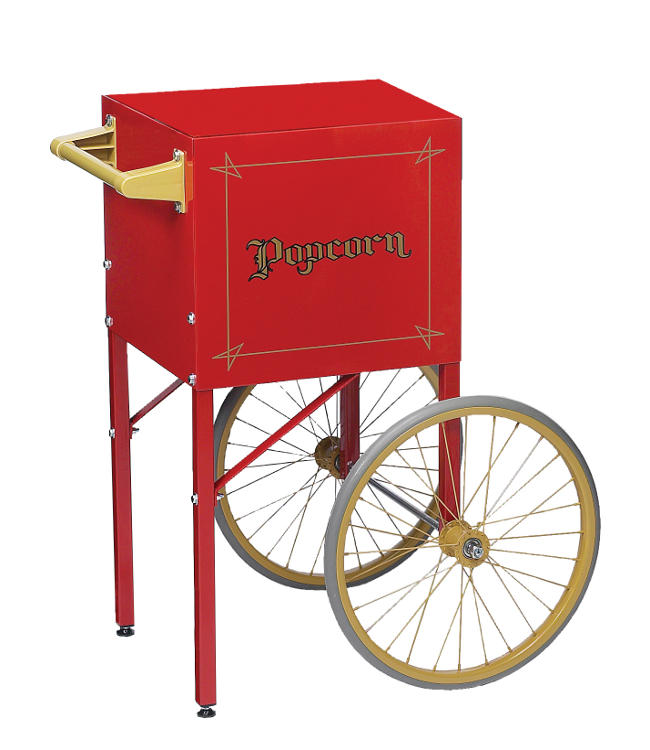 Add color and convenience to your popper. This matching cart includes a storage compartment to hold your popcorn and bags. 20" wheels and adjustable feet.