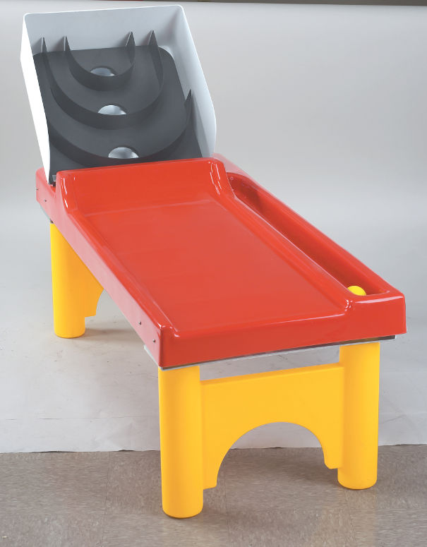 The alley and tub are universal for all roll up games. The inserts include: SnoBall, Six Cat Scramble and Birdie Ball.